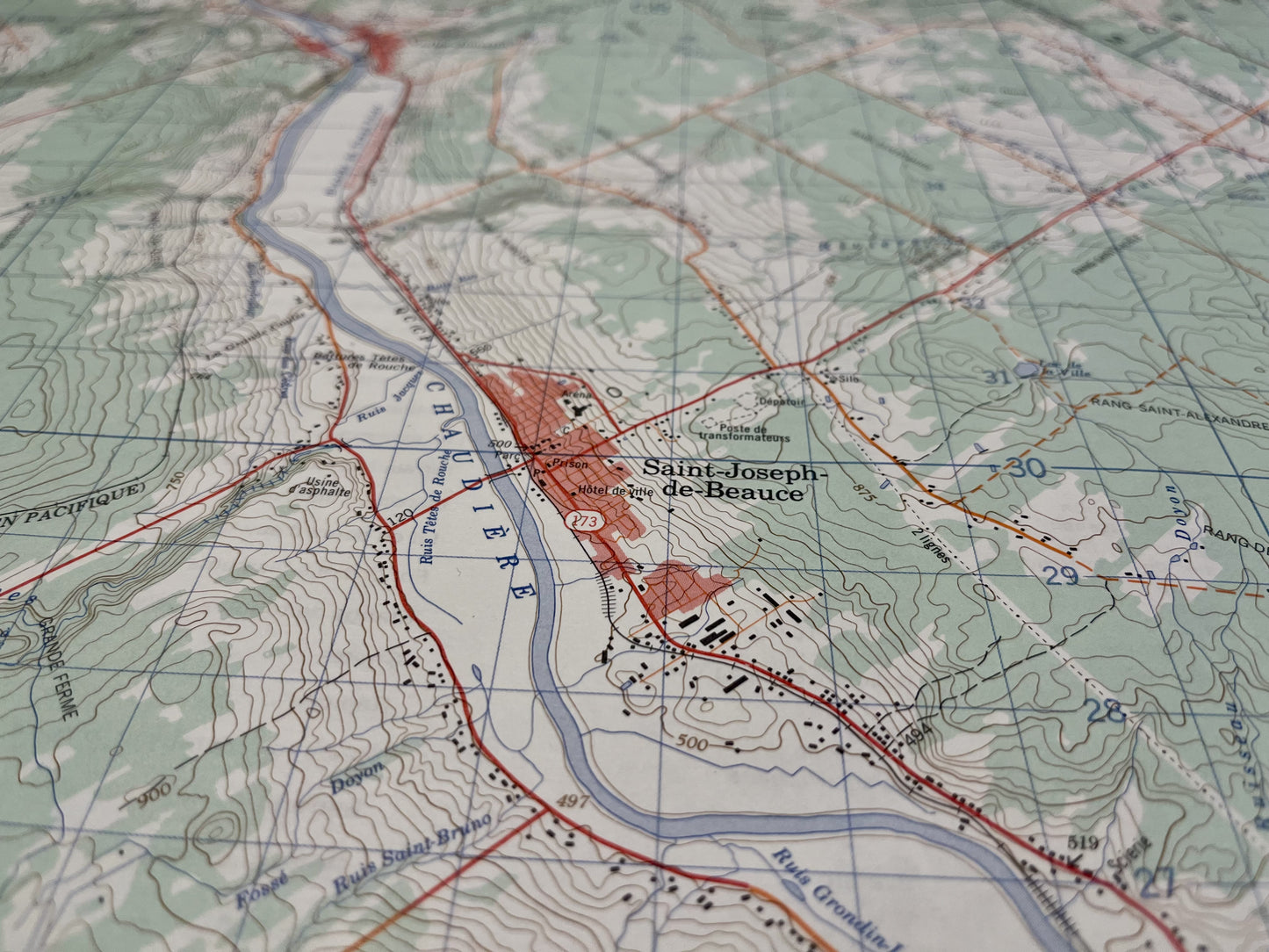 This old map of Canada represents the town of Saint-Joseph-de-Beauce and its surroundings, located in Quebec. It was published by the Department of Energy, Mines and Resources of Canada in 1983 and its dimension is 91.5x65cm.