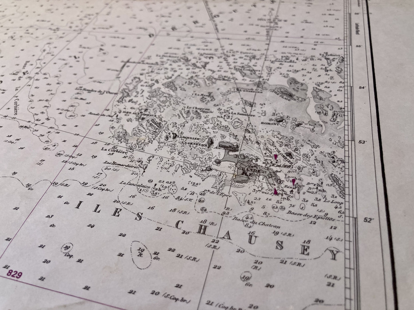 Old nautical chart of the Plateau des Minquiers