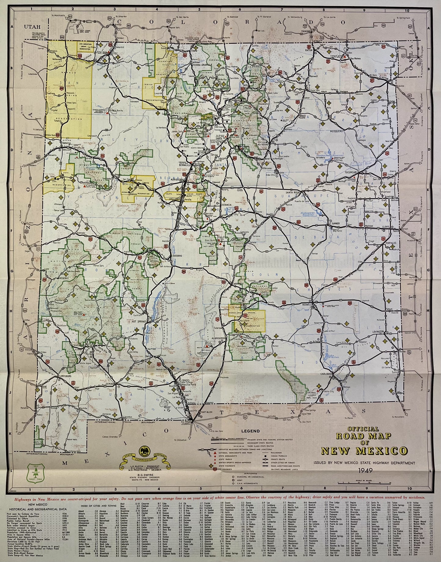 This old road map of the United States consists of a map of New Mexico on the front and various information on the back. It was published by the company Cities Services in the 1950s and its dimensions are 53x41.5cm.