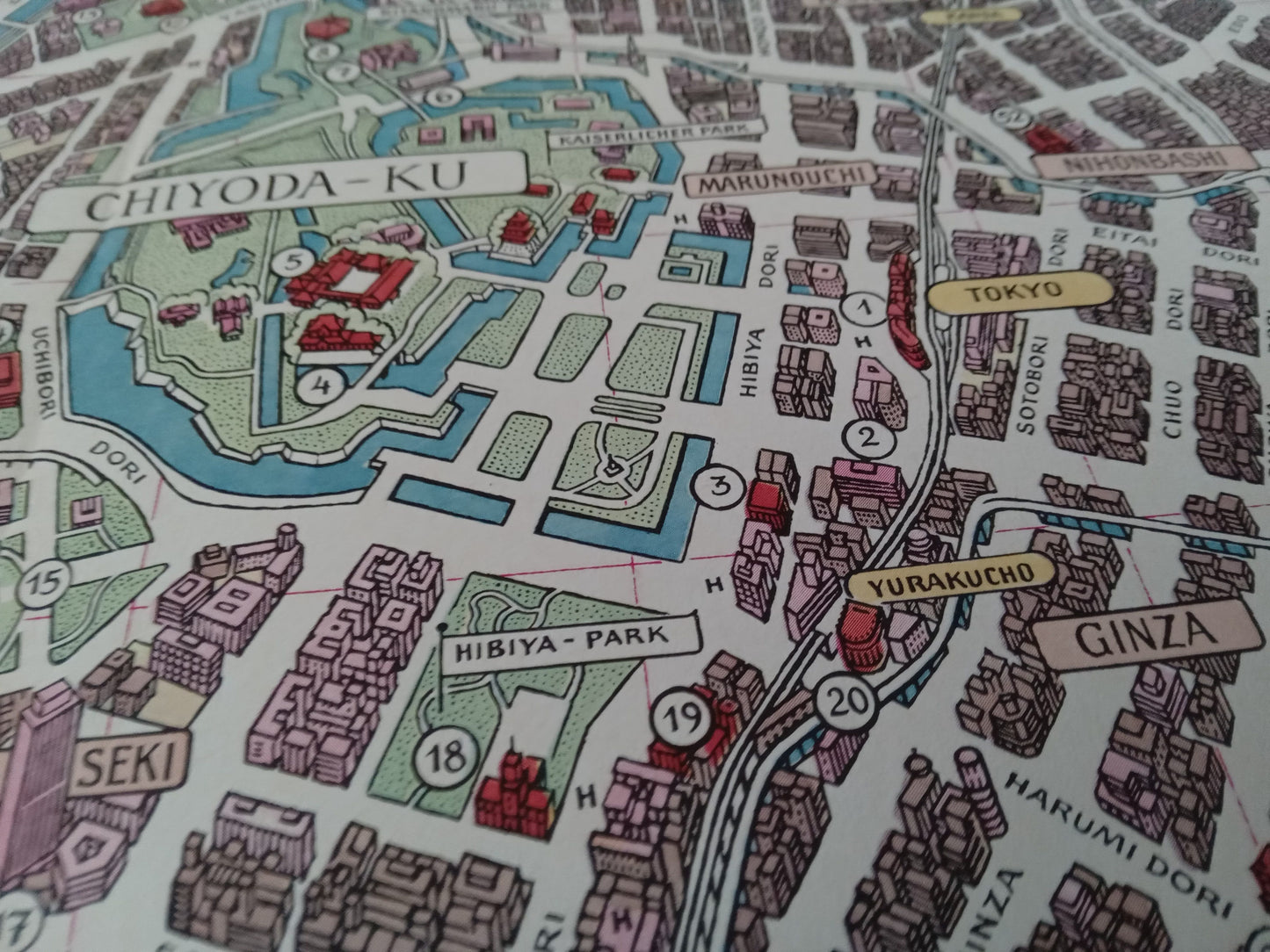 Decorative map of Tokyo (German edition) - 1970s-80s
