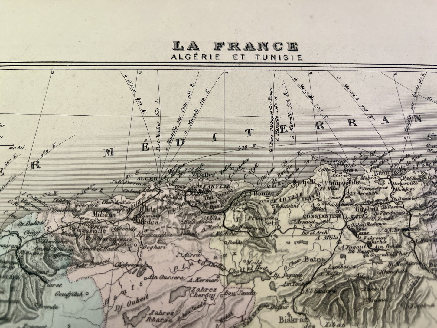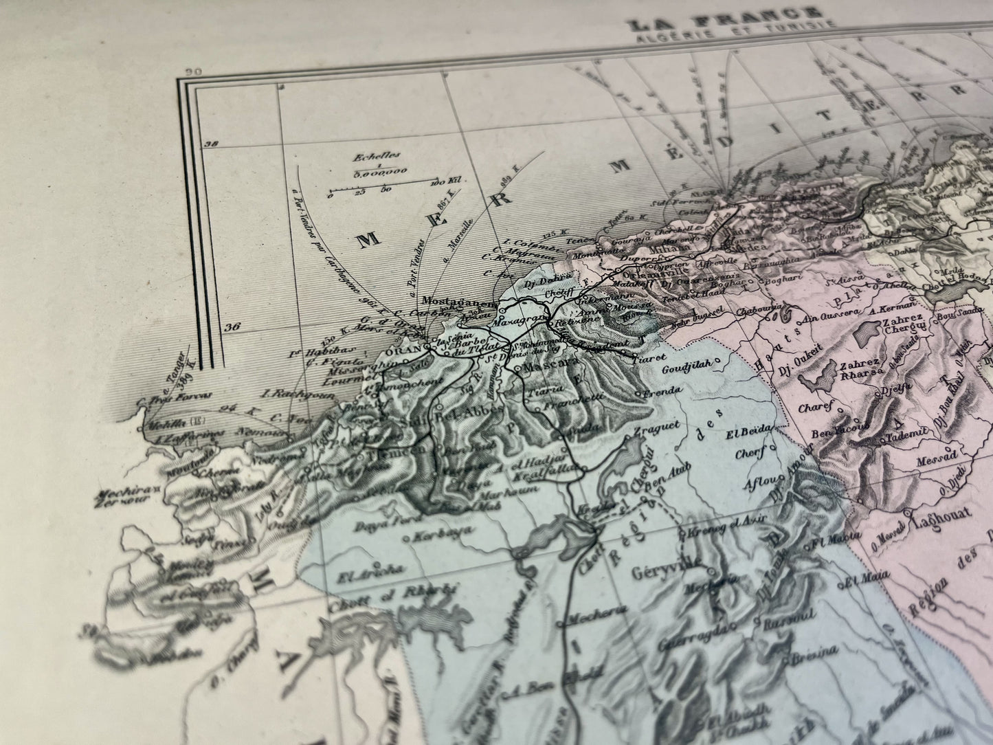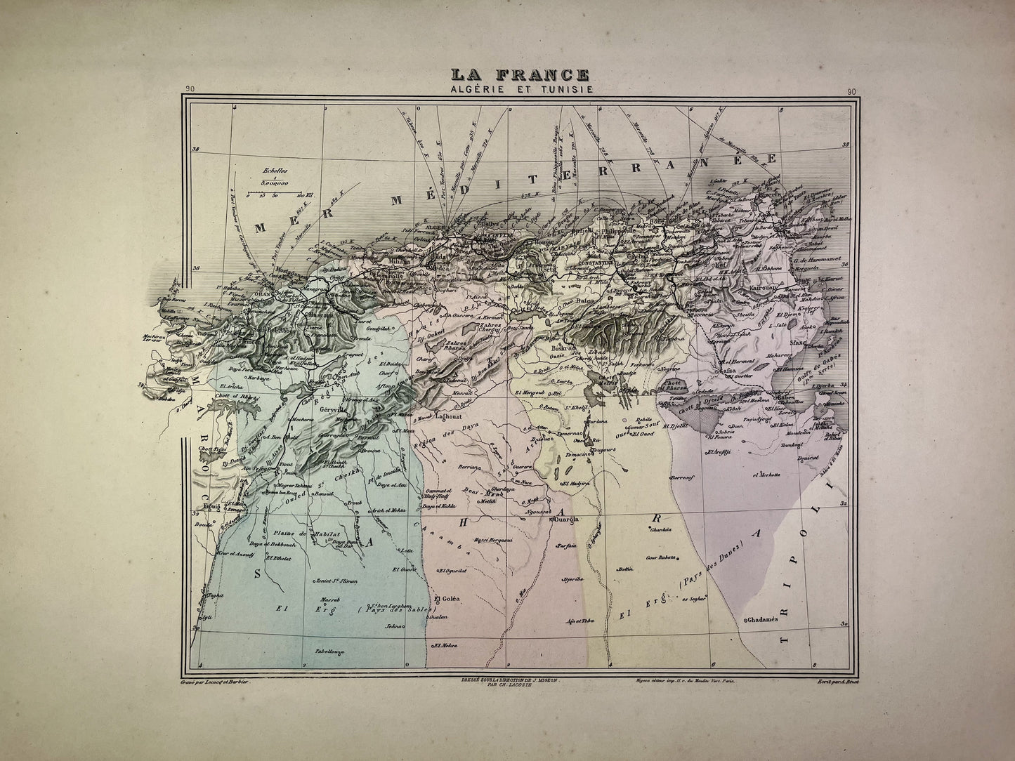 Carte ancienne de l'Algérie et la Tunisie par A. Vuillemin