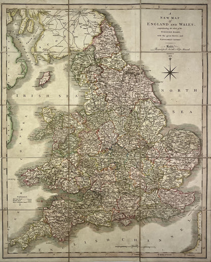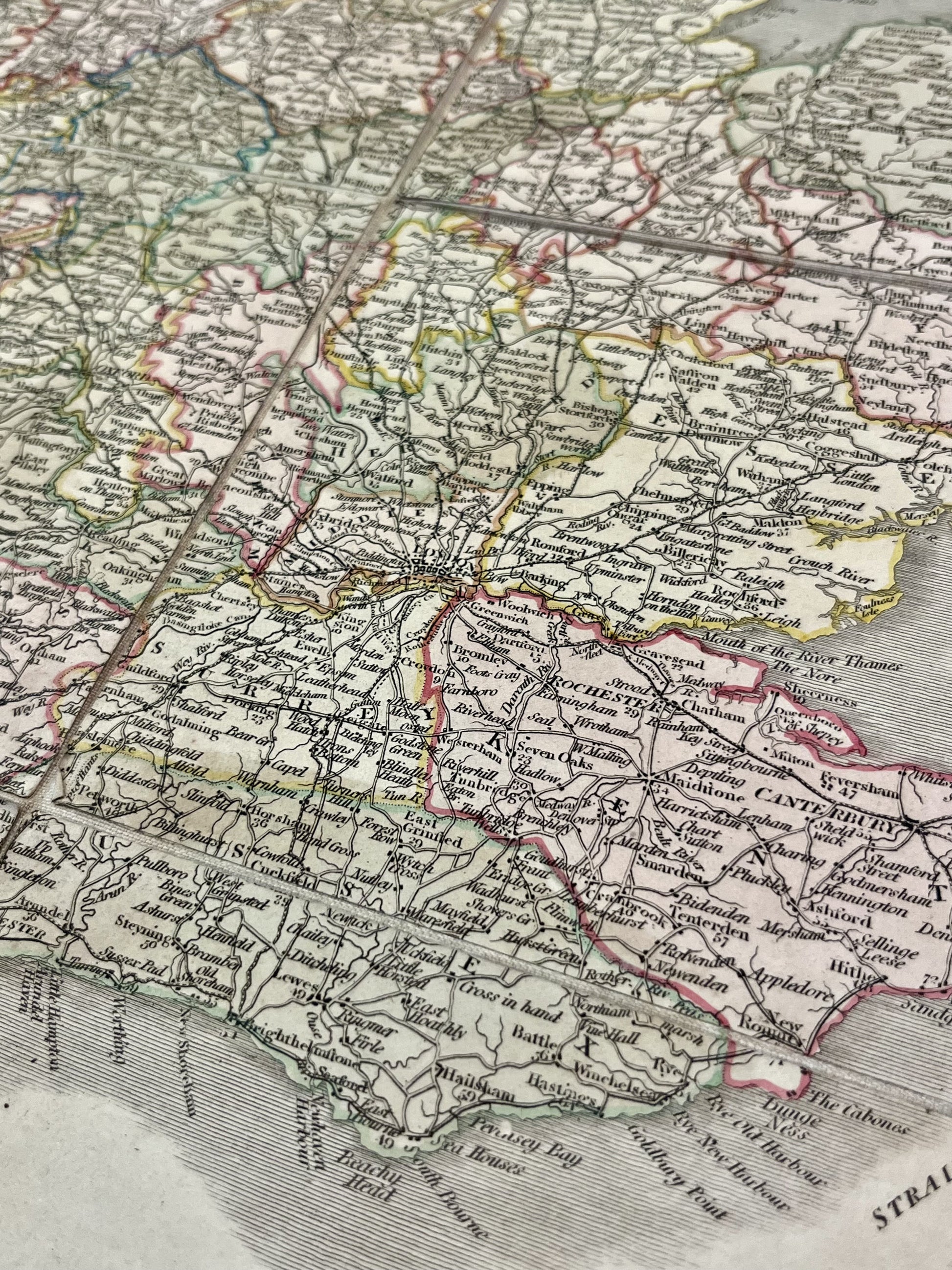 Cette carte ancienne de l'Angleterre entoilée est datée de 1831. On peut y observer les fleuves et canaux naviguables. Elle a été dressée pour C. Smith et sa dimension dépliée est de 59x48cm.