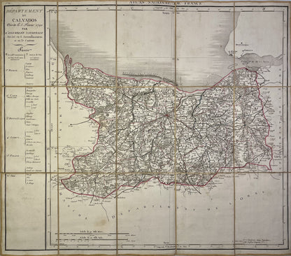 Cette carte ancienne du département du Calvados est entoilée et a été réalisée par le géographe français Pierre-Gilles Chanlaire au début du XIXe siècle. Elle est issue de l'Atlas National de France et sa dimension est de 61x53cm.