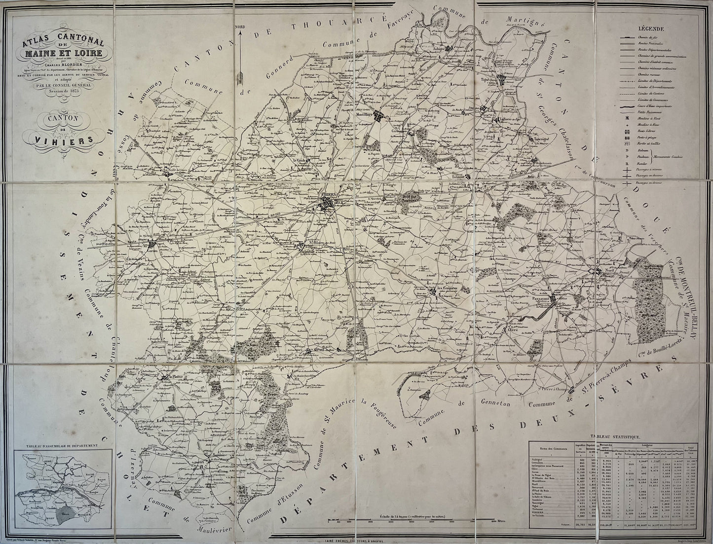 Carte ancienne du Canton de Vihiers par Charles Blordier - 1873