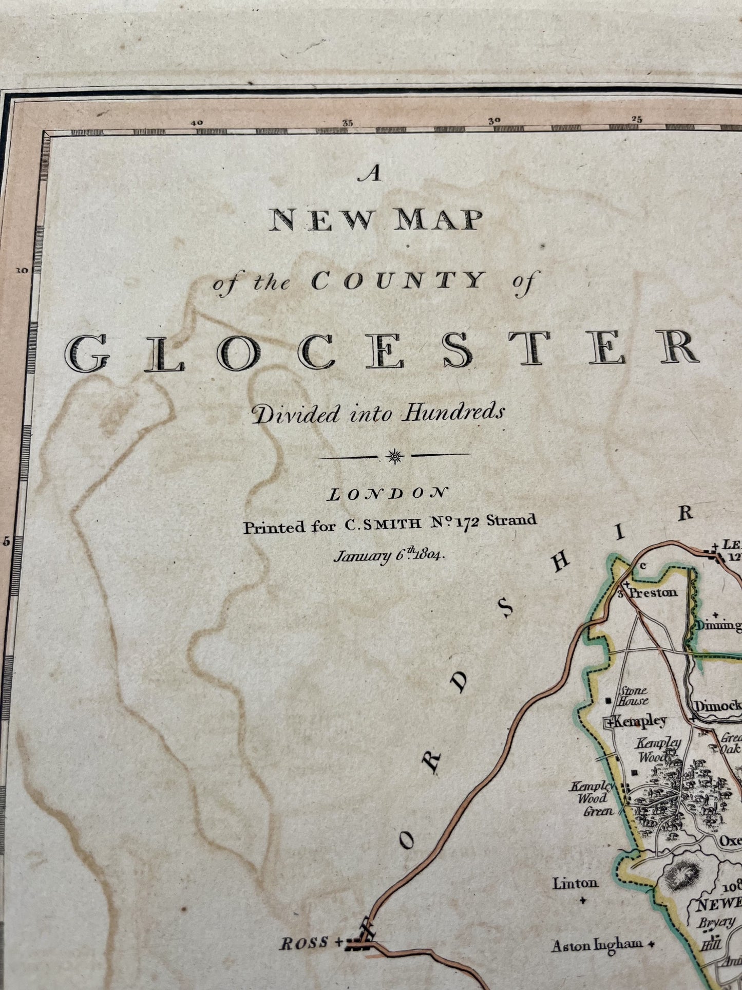 Carte ancienne du Comté de Glocester, Angleterre - 1804