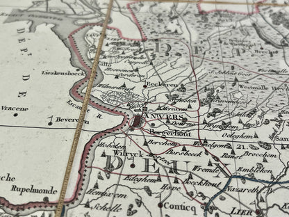 Cette carte ancienne de la Belgique représentant le département du Premier Empire des Deux-Nèthes est entoilée et a été réalisée par le géographe français Pierre-Gilles Chanlaire au début du XIXe siècle. Elle est issue de l'Atlas National de France et sa dimension est de 62x54cm.
