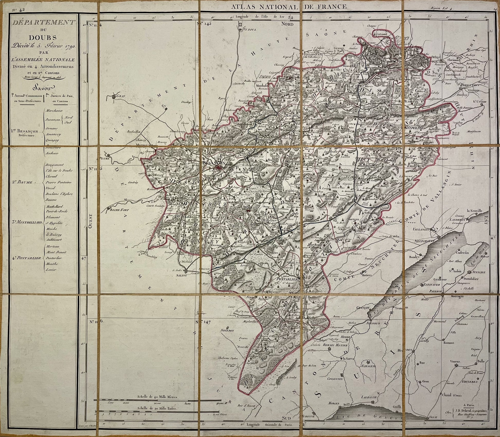 Carte ancienne du Doubs par P.G. Chanlaire - ca. 1820
