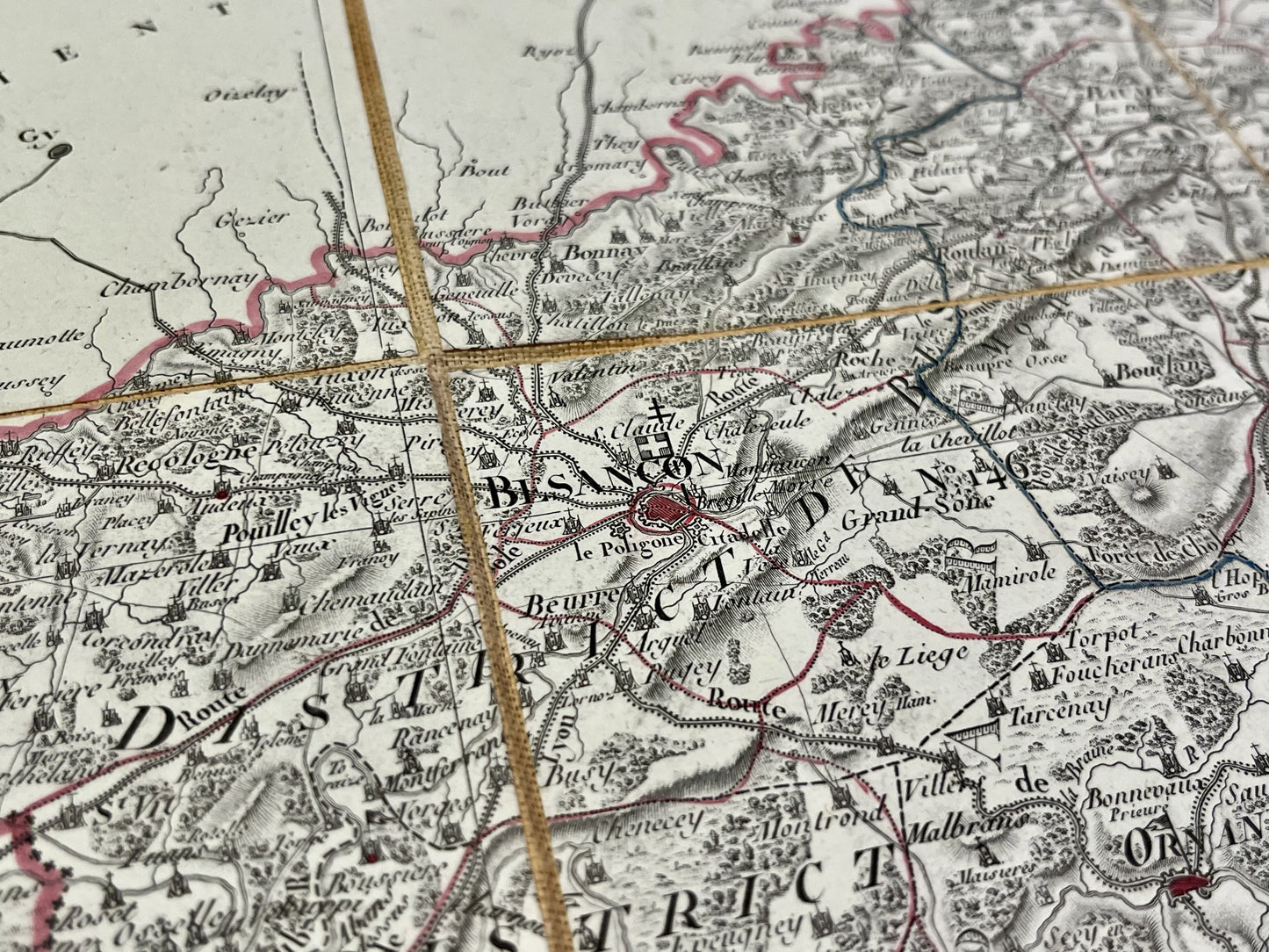 Cette carte ancienne du département du Doubs est entoilée et a été réalisée par le géographe français Pierre-Gilles Chanlaire au début du XIXe siècle. Elle est issue de l'Atlas National de France et sa dimension est de 62x54cm.