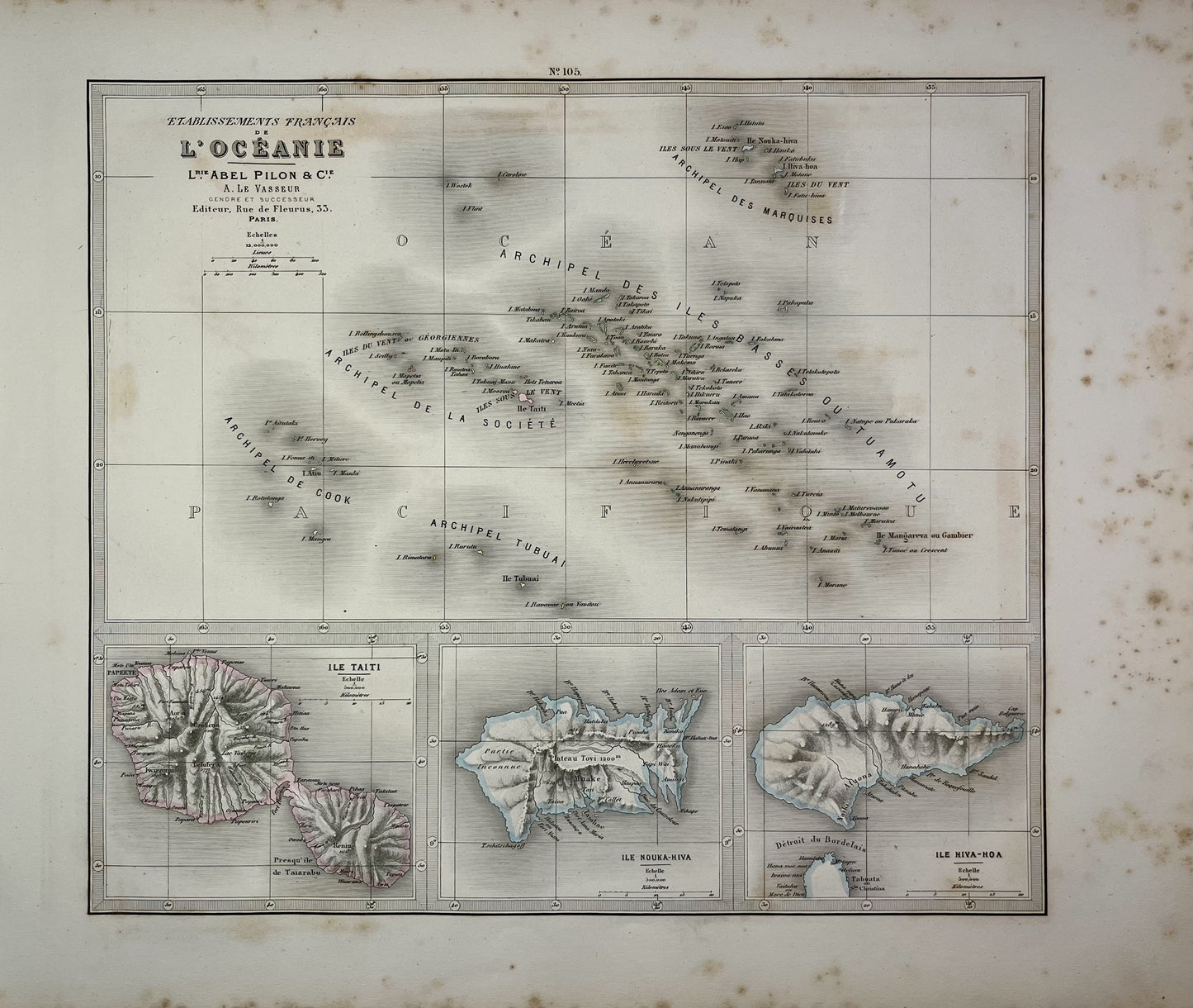 Carte ancienne des établissements français de l'Océanie par A. Pilon et Cie
