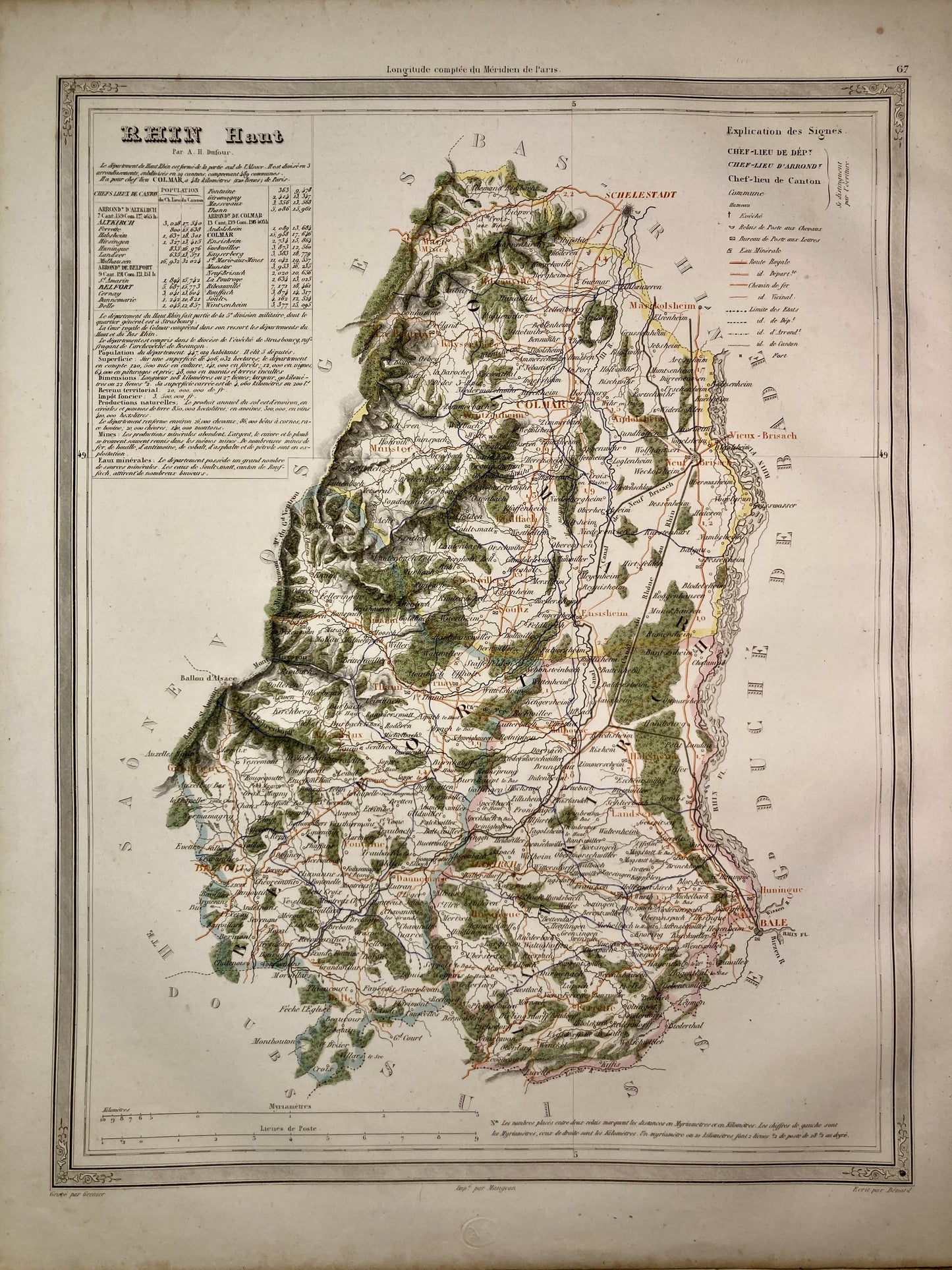 Carte ancienne du Haut-Rhin par A.H. Dufour