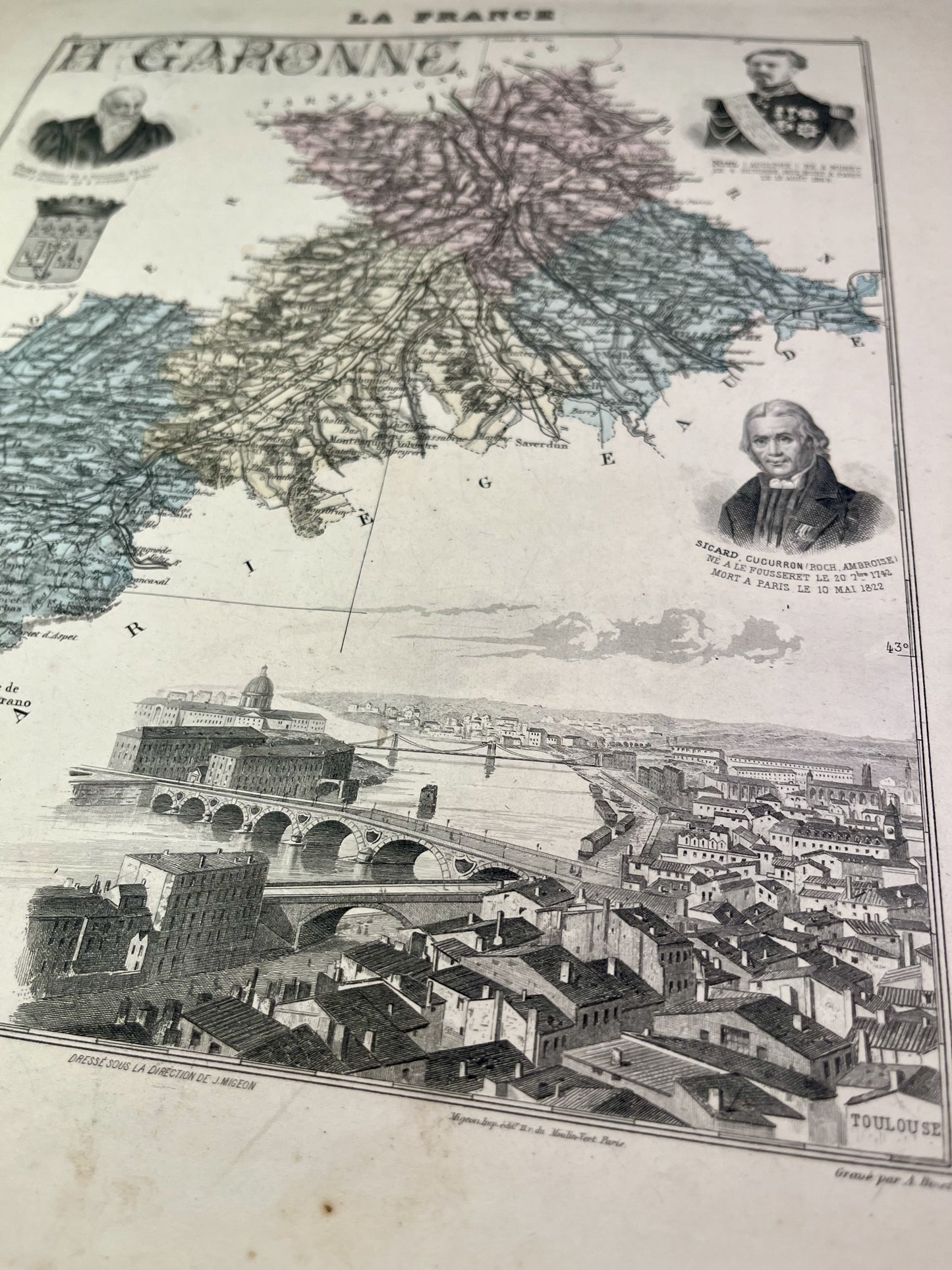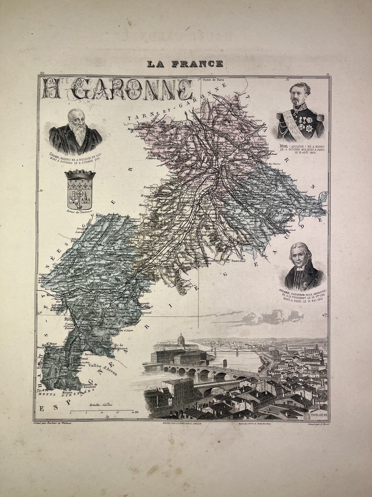 Carte ancienne de la Haute-Garonne par A. Vuillemin