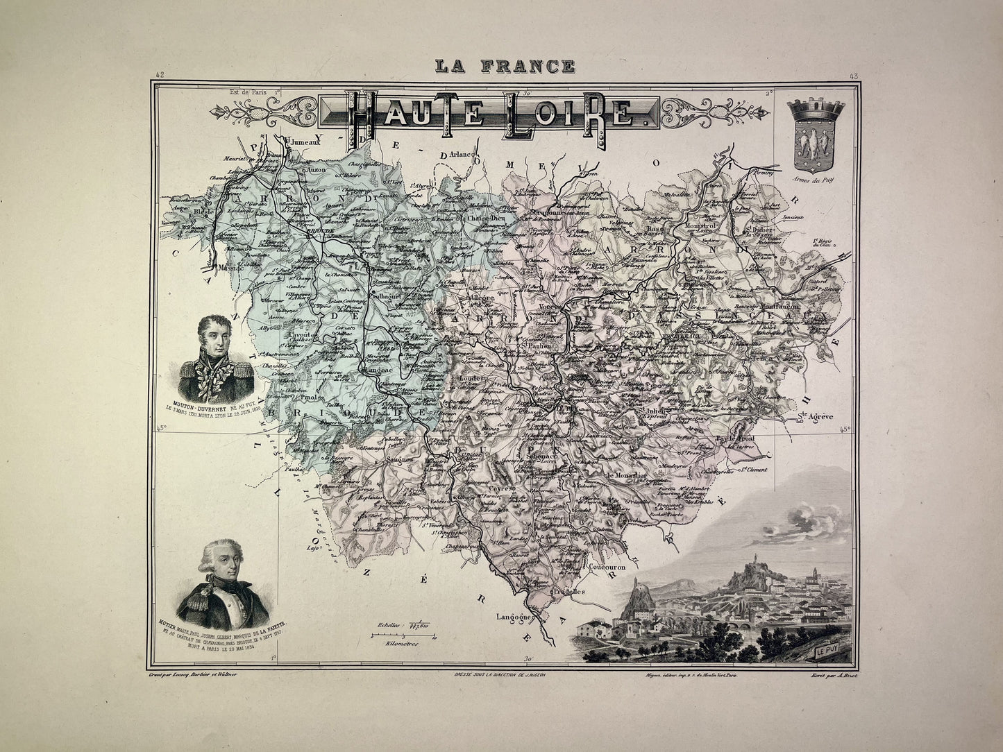 Carte ancienne de la Haute-Loire par A. Vuillemin