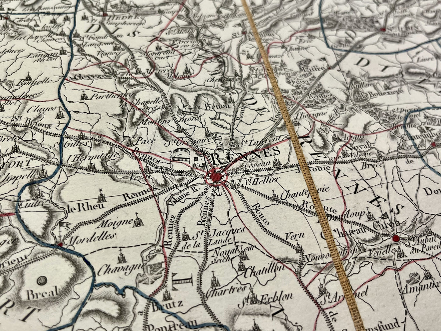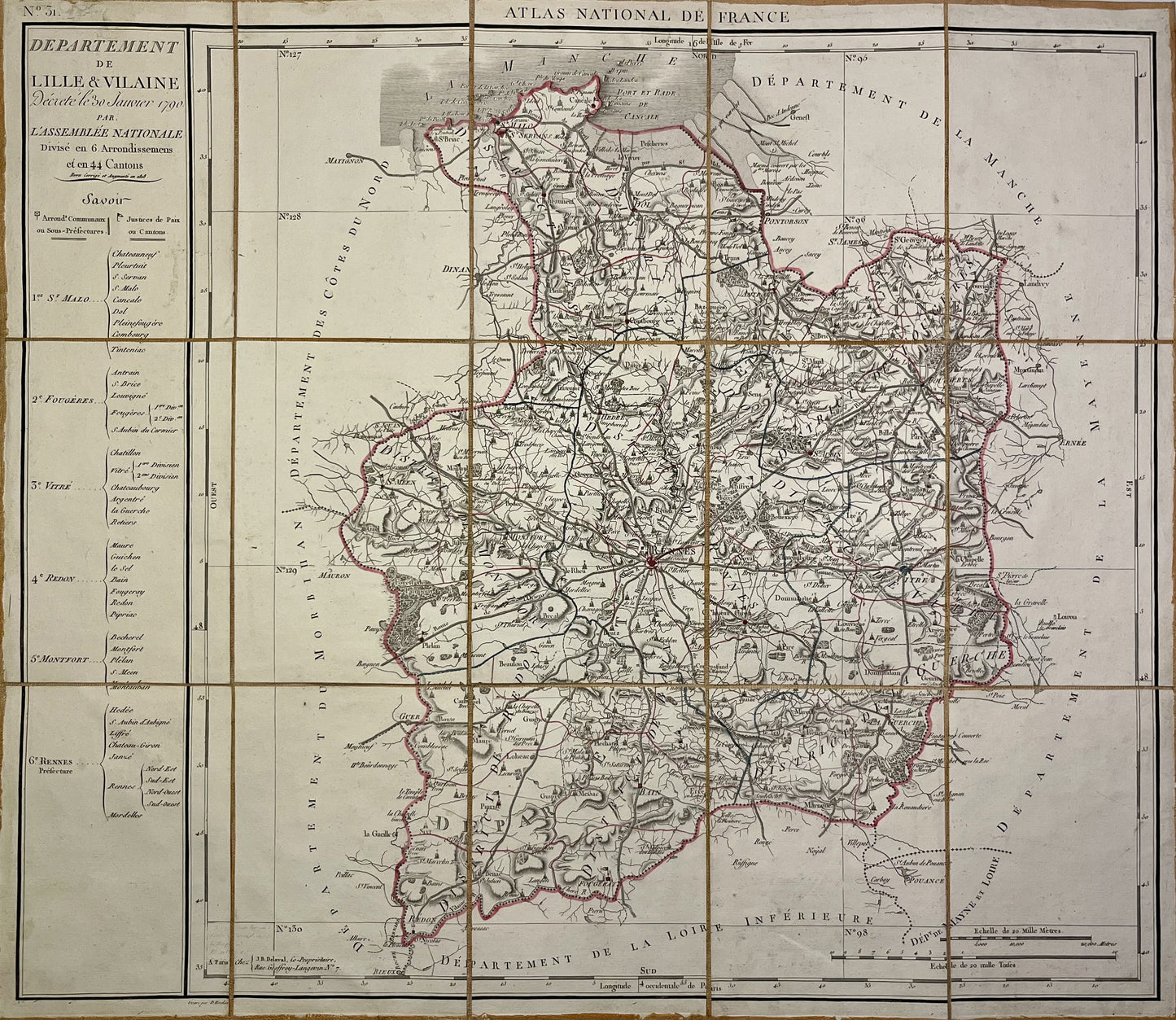 Cette carte ancienne du département de l'Ille-et-Vilaine est entoilée et a été réalisée par le géographe français Pierre-Gilles Chanlaire au début du XIXe siècle. Elle est issue de l'Atlas National de France et sa dimension est de 62x54cm.