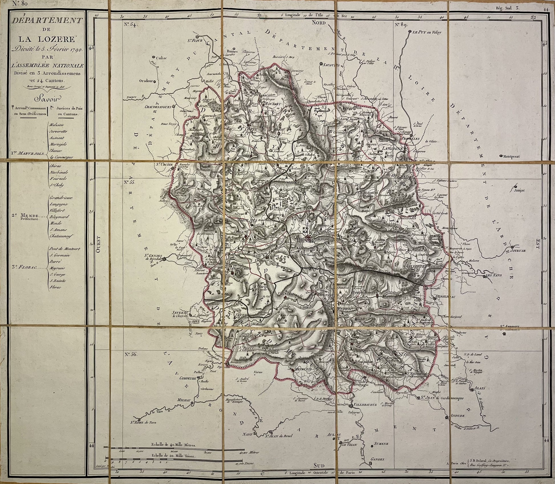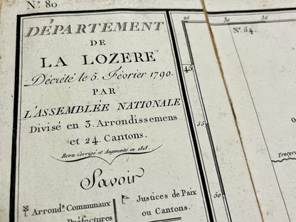 Carte ancienne de la Lozère par P.G. Chanlaire - ca. 1820