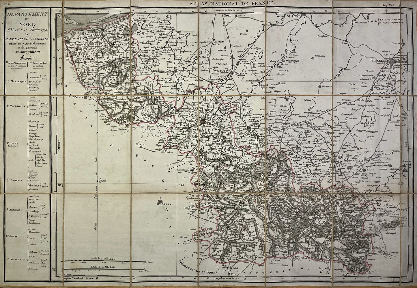 Cette carte ancienne du département du Nord est entoilée et a été réalisée par le géographe français Pierre-Gilles Chanlaire au début du XIXe siècle. Elle est issue de l'Atlas National de France et sa dimension est de 78,5x54cm.