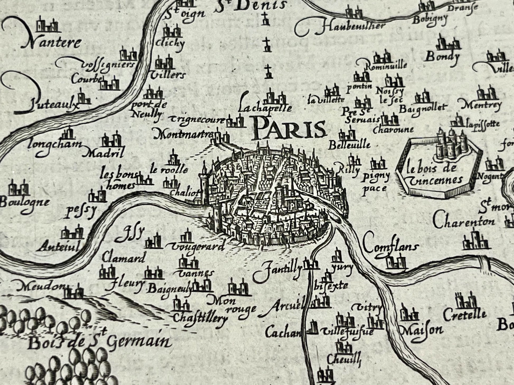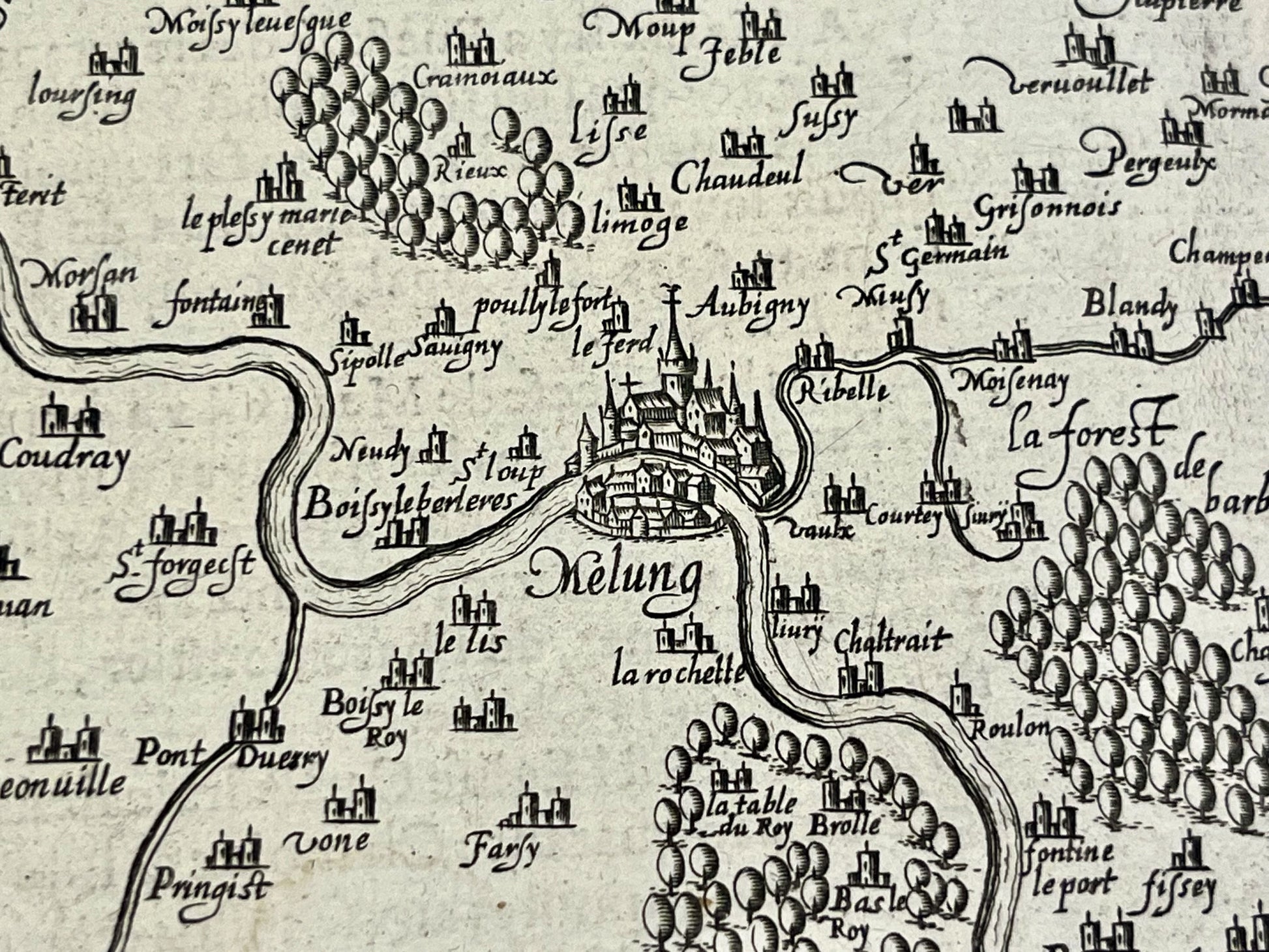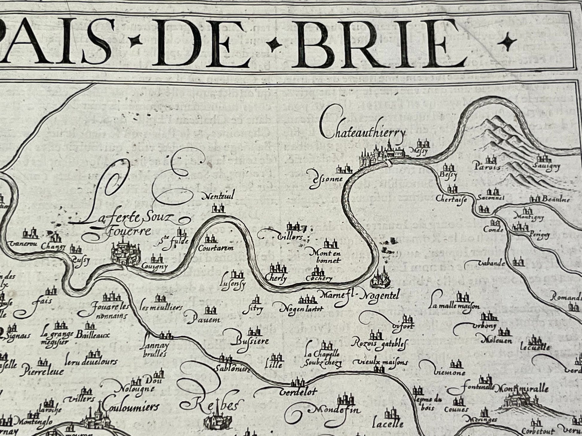 Cette carte ancienne de l'Île-de-France représentant le pays de Brie date du milieu du XVIIe siècle et sa dimension est de 56,5x44cm. Elle a été éditée par Damien de Templeux.