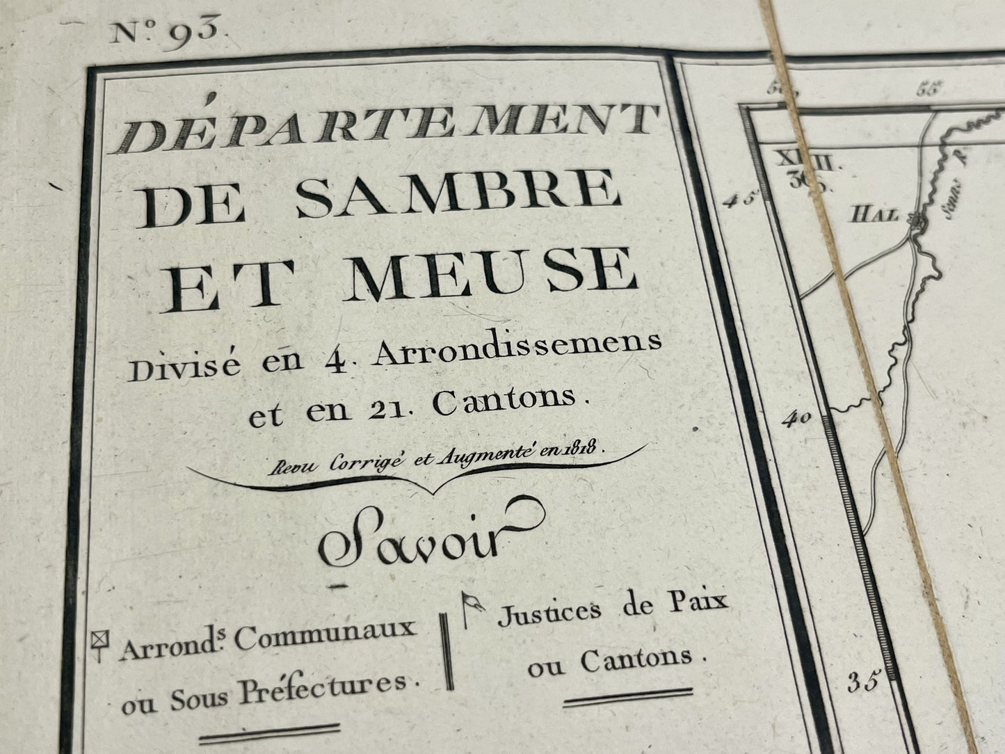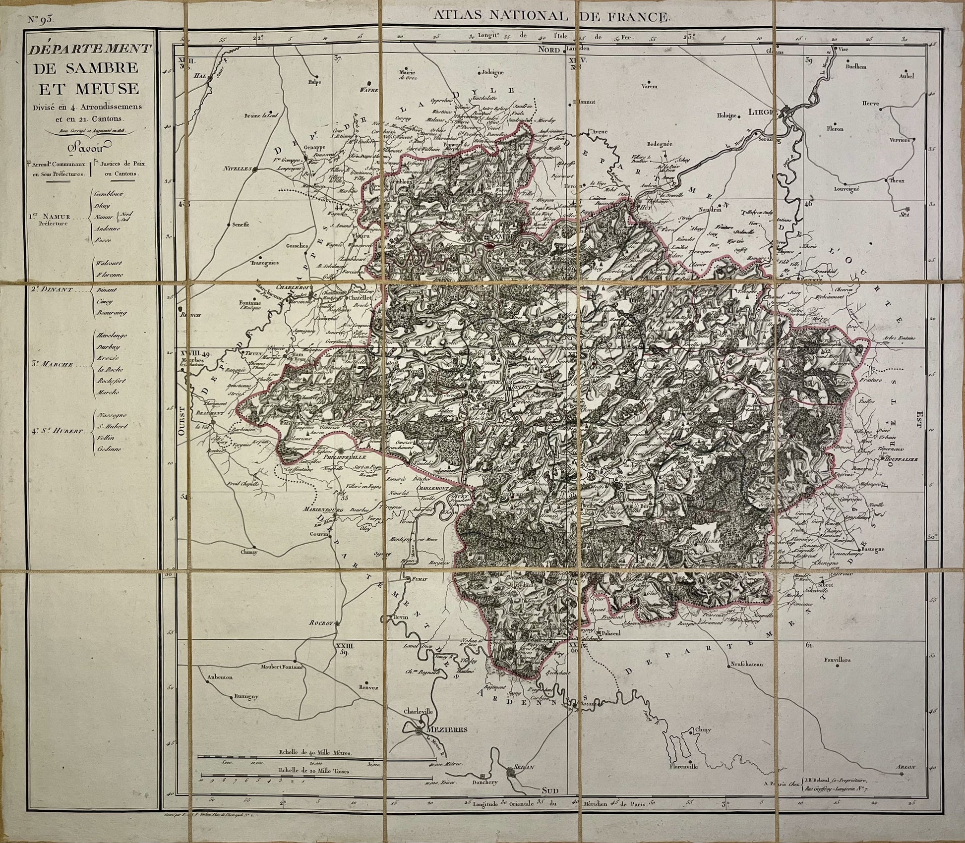 Carte ancienne du département de Sambre-et-Meuse par P.G. Chanlaire - ca. 1820