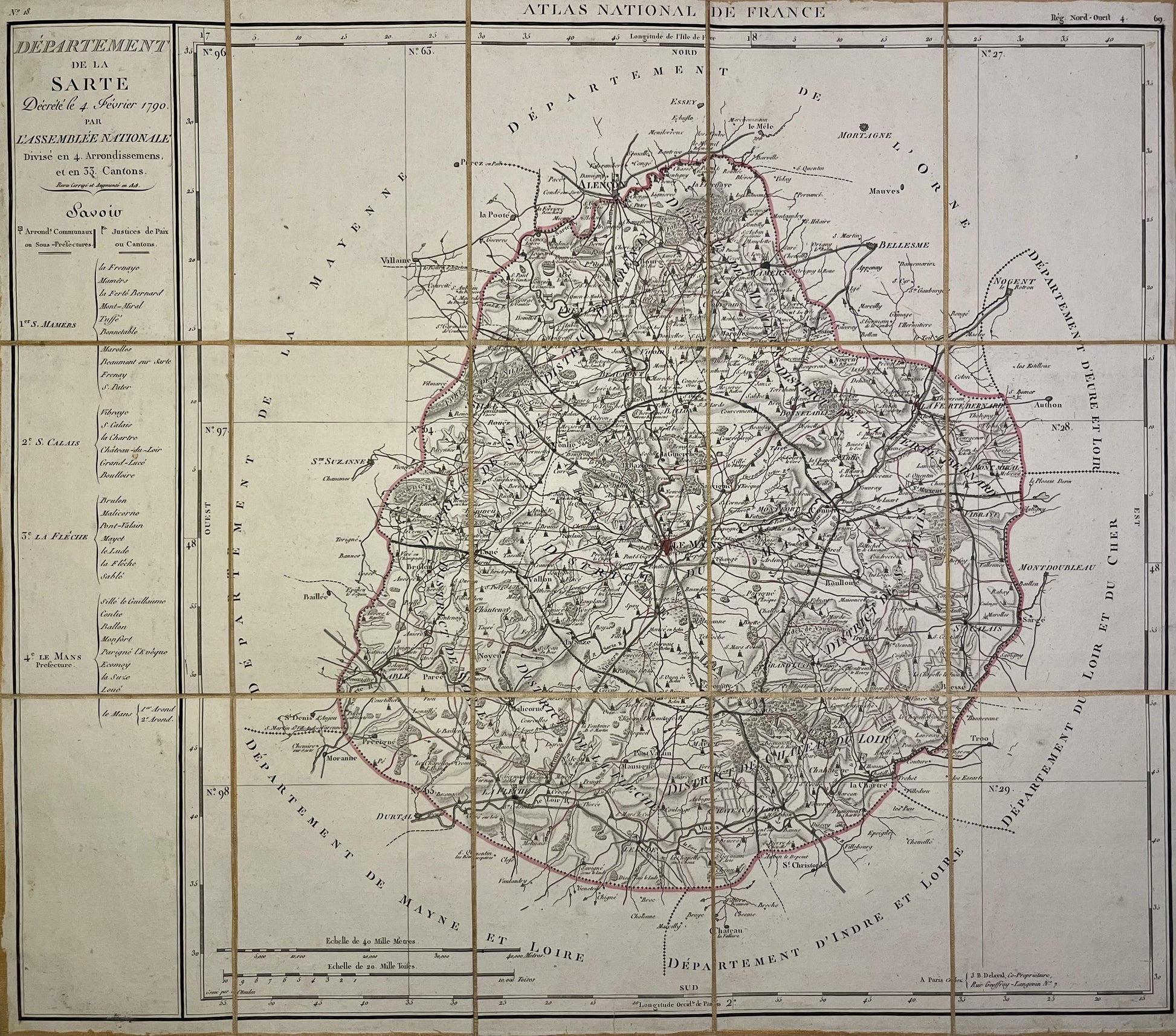 Carte ancienne de la Sarthe par P.G. Chanlaire - ca. 1820