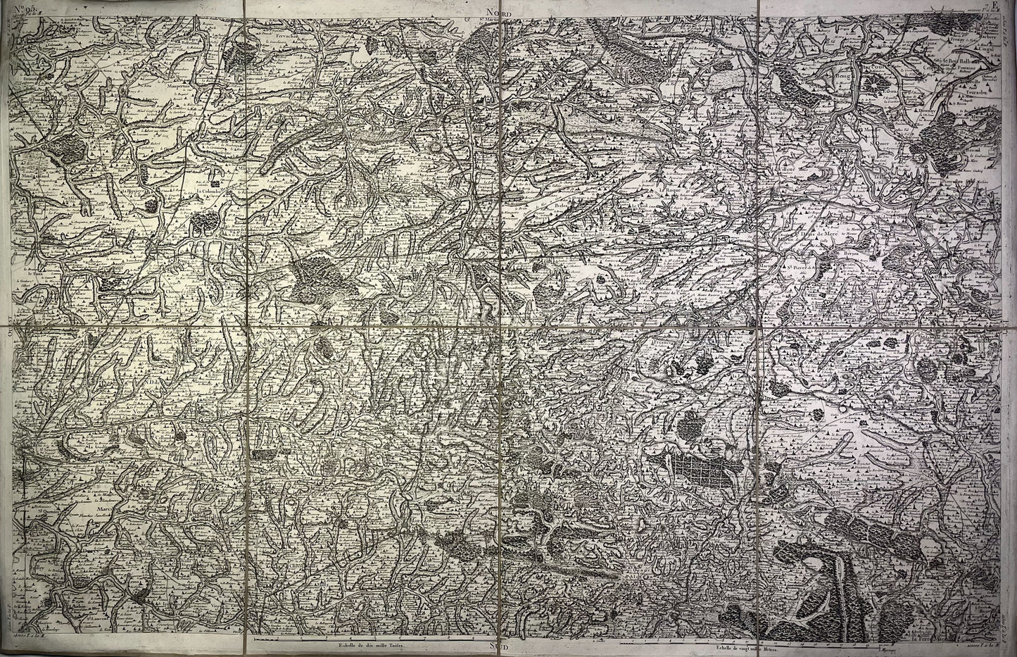 Cette carte de Cassini entoilée ancienne intitulée "Avranches" (N°95) a été réalisée par la famille Cassini et éditée par par Charles Picquet. Elle date du début du XIXe siècle (non-datée) et sa dimension est de 92,5x60,5cm (8 panneaux).