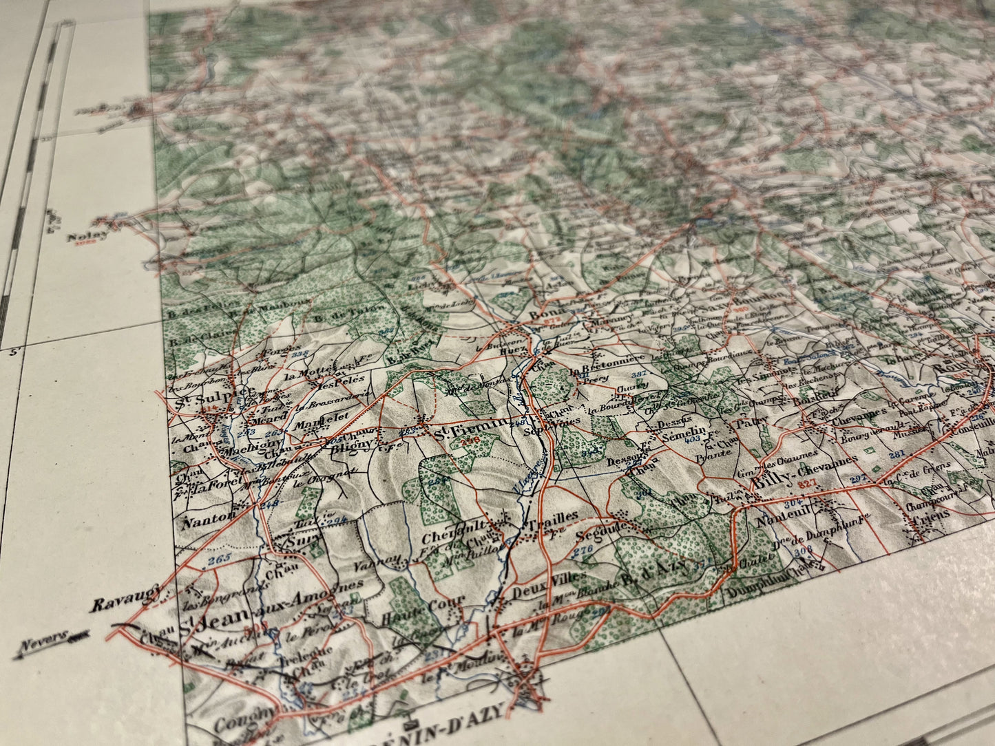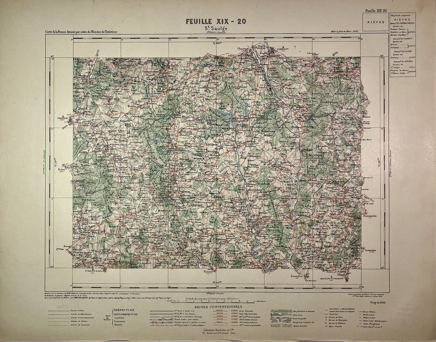 Cette carte ancienne de la Nièvre intitulée "Saint-Saulge" (XIX-20), a été réalisée par le Ministère de l'Intérieur de la fin du XIXe au début du XXe siècle. Sa dimension est de 57x45cm. Pour en savoir plus, découvrez mon article sur la carte du Service Vicinal.