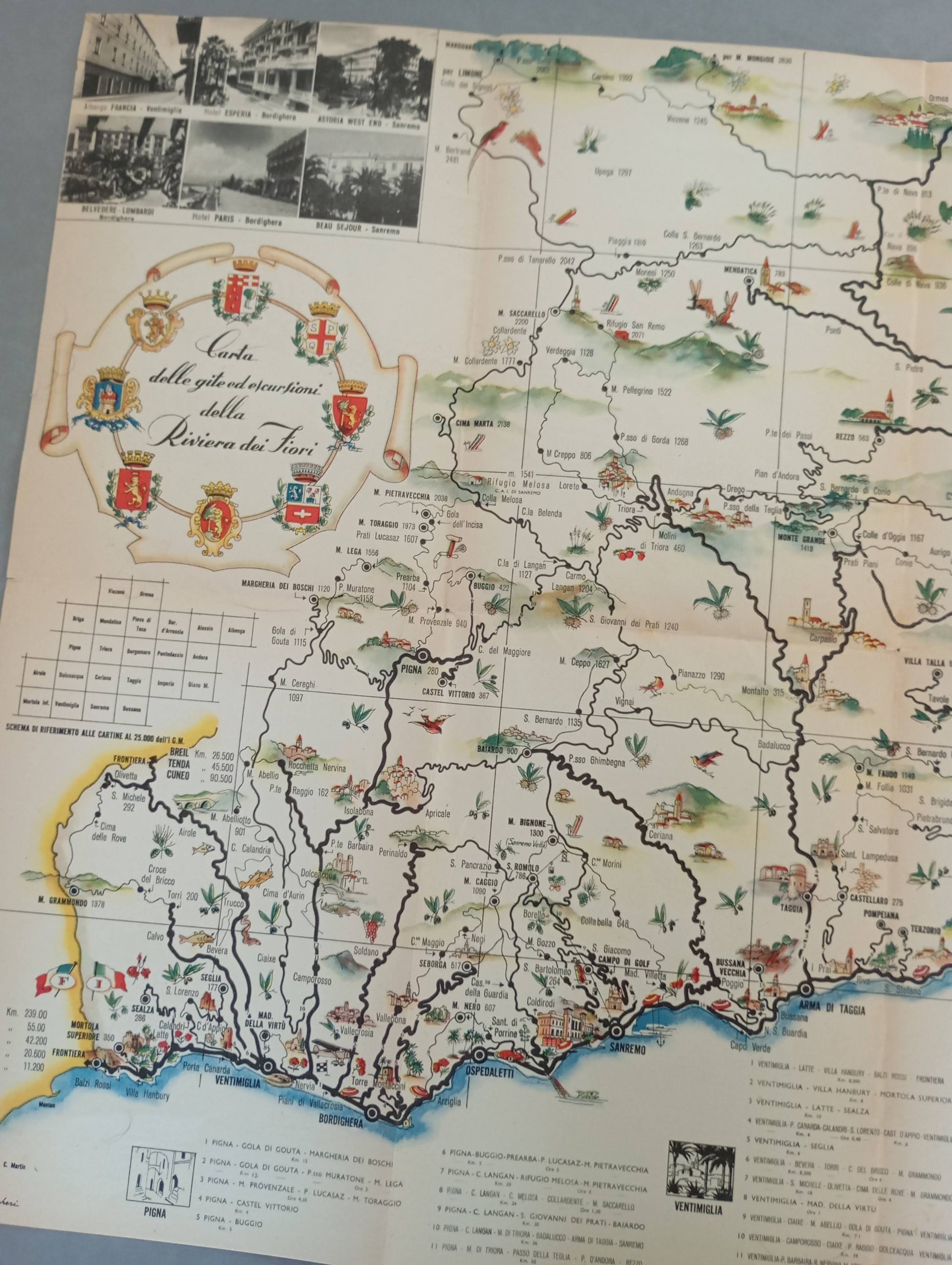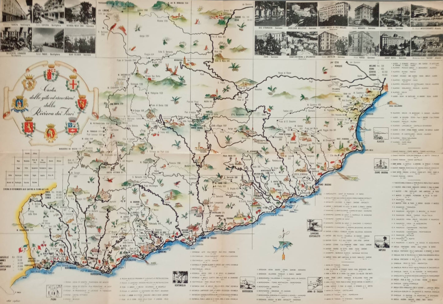 Carte des Excursions de la Riviera dei Fiori (Italie) par Aldo Cigheri - ca. 1950