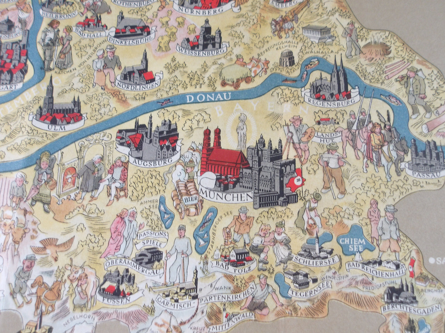 Carte illustrée de l'Allemagne par Walter Riemer - 1936