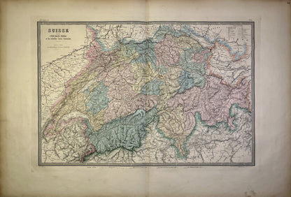Cette carte ancienne de la Suisse a été publiée par E. Andriveau-Goujon en 1885. Sa dimension est de 101,5x69,5cm.